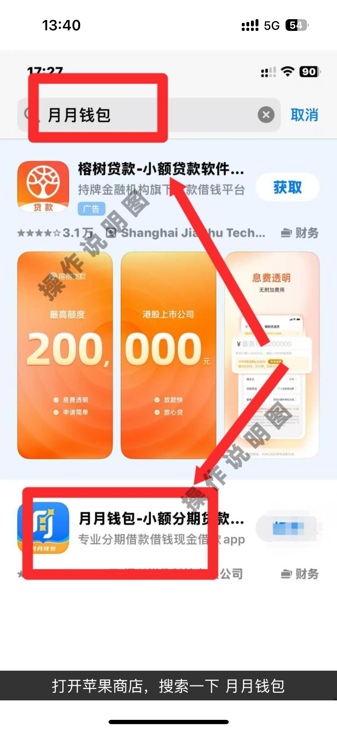 第1步:打开苹果商店,搜索一下 月月钱包